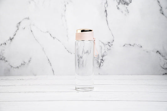 The Glassware Company | Glass Water Bottle with Pink Cap